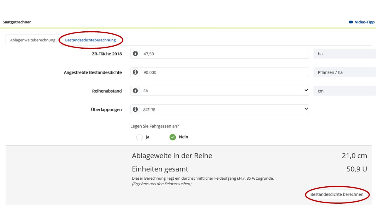 Wie 2017 steht Ihnen auch 2018 der Saatgutrechner im AgriPortal Consult zur Verfügung. Der Saatgutrechner ermittelt Ihnen auf Grundlage Ihrer Anbaufläche 2018, der angestrebten Bestandesdichte, des Reihenabstandes und der Anlage von Fahrgassen Ihre individuelle Ablageweite in der Reihe sowie Ihren Saatgutbedarf insgesamt.