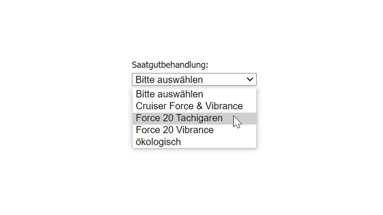 Alternativ können Sie bei der Nachbestellung die Beize Force 20 Tachigaren (Wirkstoff Hymexazol) auswählen, die in jedem Fall überlagert werden kann. Diese Beize wird für ausgewählte Sorten auch in der Kommission zur Verfügung stehen.