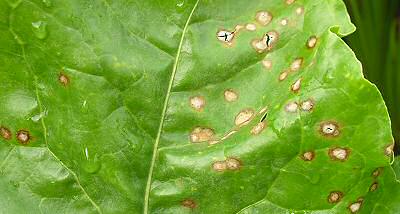 Cercospora er et stort problem i Syd- og Midteuropa og har i de senere år spredt sig længere mod nord og forekommer også i Danmark. Varmt og fugtigt vejr fremmer svampens udvikling. Symptomerne minder om ramularia, men pletterne er mindre (ca. 2 - 5 mm) og mere skarpt afgrænsede med en mørk rødbrun kant. Angrebet er meget destruktivt og hele bladpladen visner hurtigt og får en sortbrun farve.