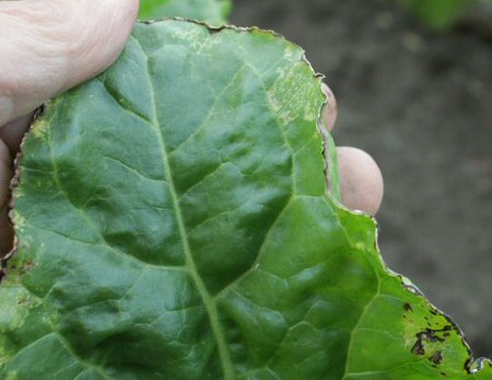 I juli og august måned kan der efter fugtige og blæsende forhold ofte findes roeblade med bakteriel bladplet (pseudomonas syringae). Angrebene skyldes jordbakterier, som under fugtige forhold angriber blade, der er beskadiget af vindslid, kraftig nedbør, radrensning eller anden fysisk skade. Angreb forsvinder igen under mere varme og tørre forhold.